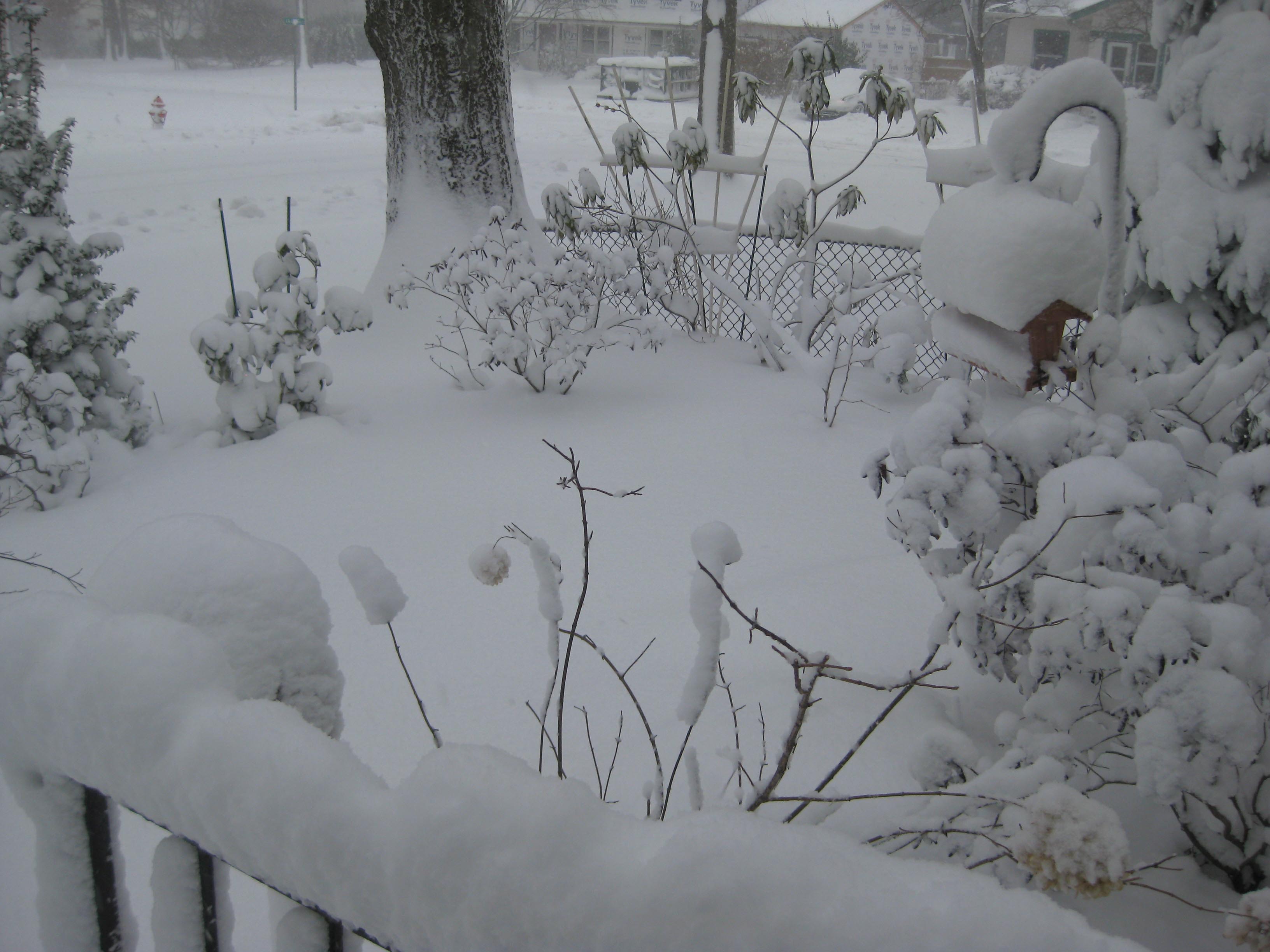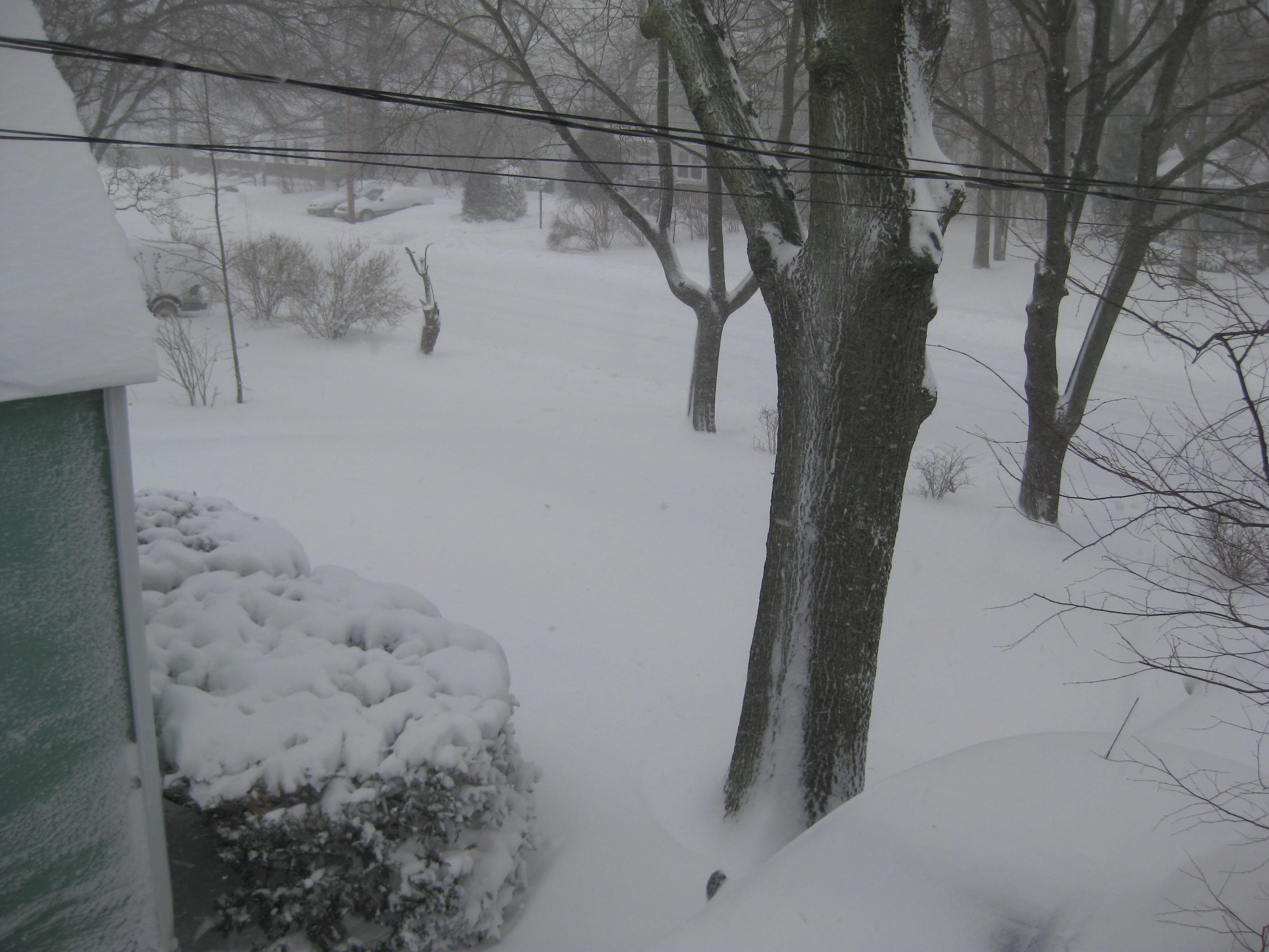 Note the bird feeder to the right center of the photo. Yes, that is what a foot of snow looks like when piled on a bird feeder.