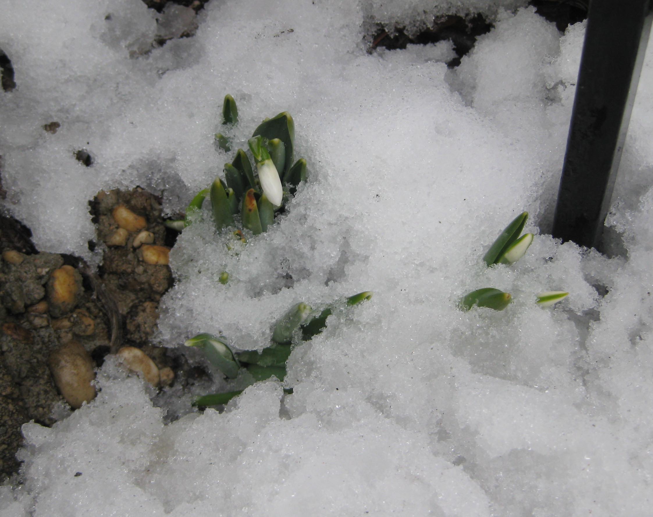 A snowdrop! A living, green thing amid all the slush! Spring is coming, we just need to wait out the snow!