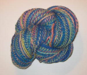 Unfortunately, the photo was only of one strand and, of course, featured a lovely overspun spot. It did not give the slightest hint of the real color so, for all of you out there wondering, here is the full skein: