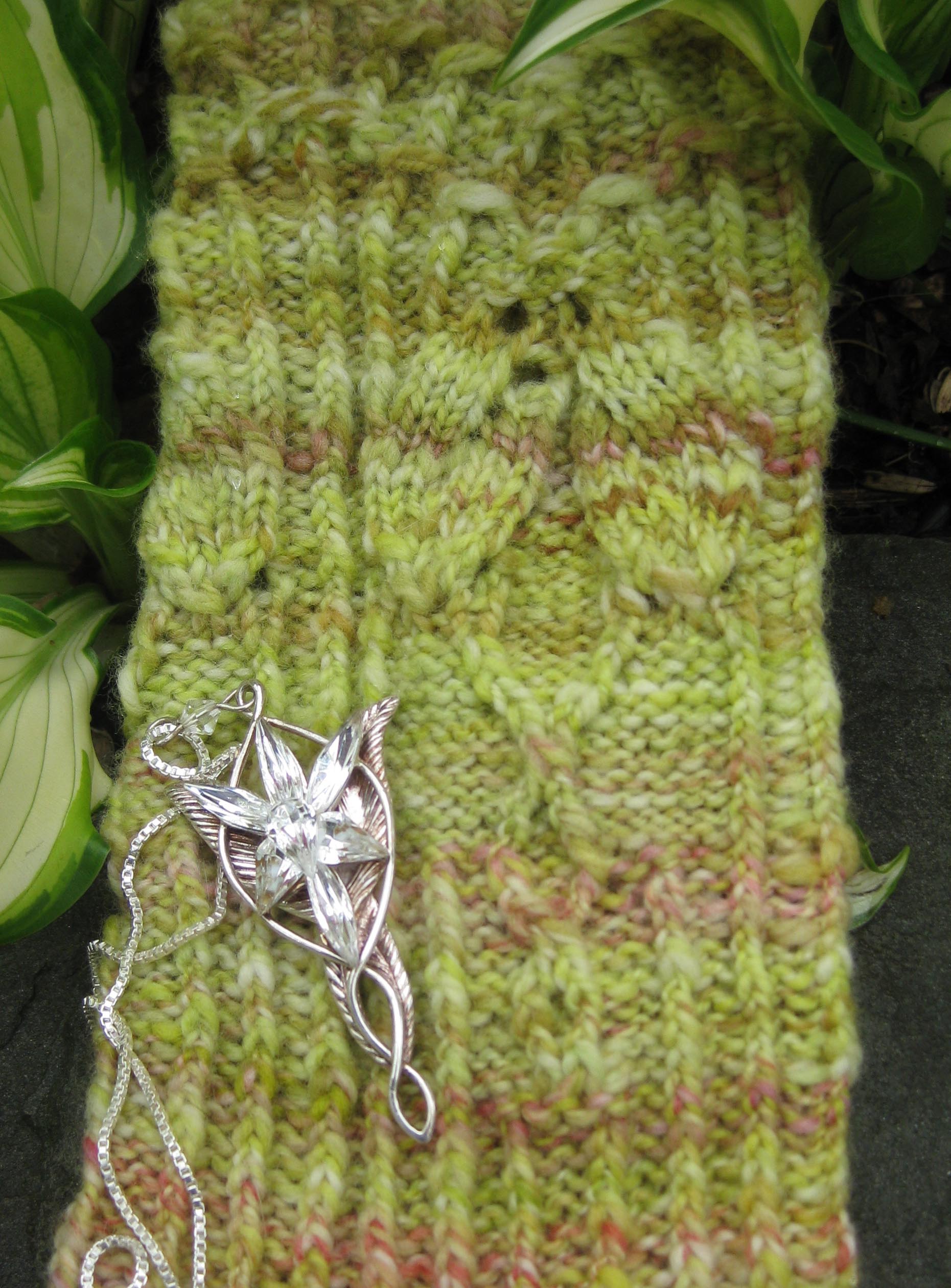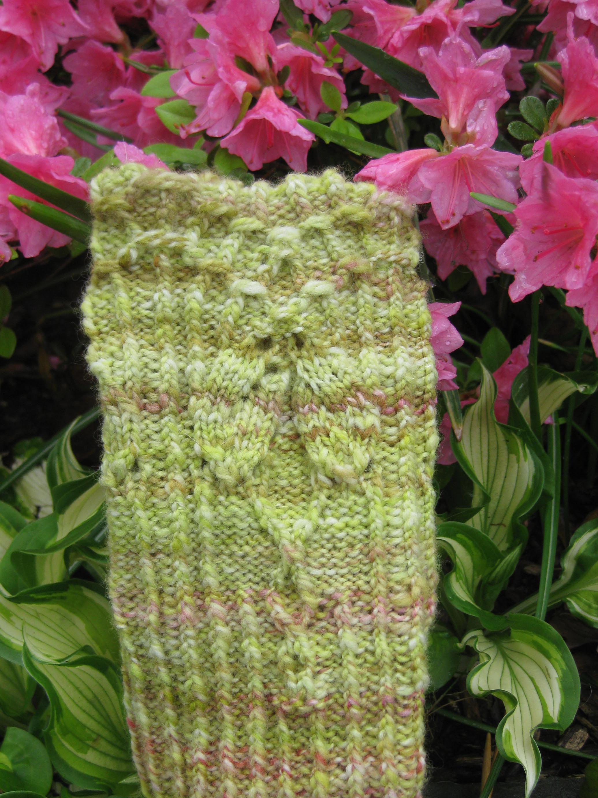 I have been able to get some knitting done at the vet’s office. Here is the progress on the Rivendell socks, designed by Janel Laidman and started in a previous post:
