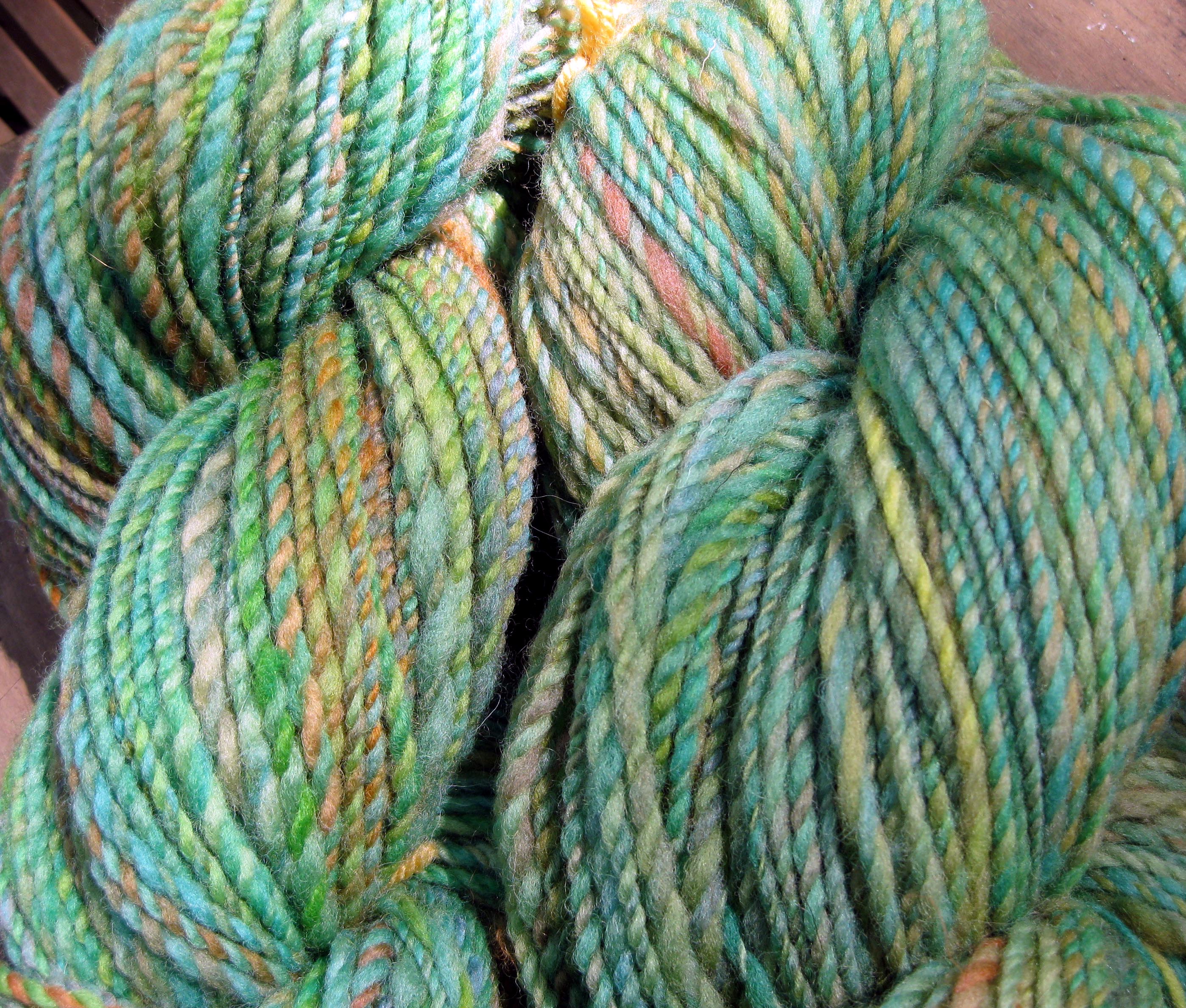 Hi! I’m so excited I found this blog – my MIL recently purchased me a skein of your In the Greenwood 2 yarn – I’m a beginner knitter so getting amazing, hand spun yarn is real treat that I don’t usually feel I merit with my skill level πŸ™‚ – I just wanted to pop in and say how much I love the texture and the colors and that I can’t wait to work with it – it’s on deck after my sweater is finished…I’m still mulling over what to make!