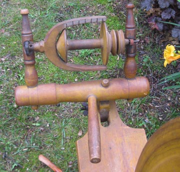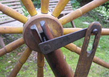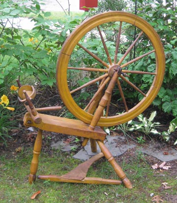 The seller told us she had acquired the wheel, ironically in New Jersey, some 28 years ago but had never spun on it. She did not realize the MOA was installed backwards, so anyone trying to spin on it would have had some trouble! The seller also told us that the dealers who had the wheel said they had gotten it from an estate sale in West Virginia. Beyond that, she did not know anything about the wheel, except that it might be Canadian. In that, she was correct!