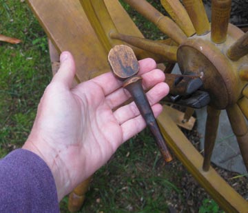 She has one carved pin holding in her wheel axle, and what a big pin!