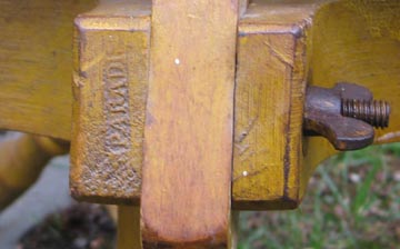 I did not see this until this morning when we unloaded her from the car. She is stamped “Paradis” on the front of her bench, next to the tensioning device. Now, to figure out if that is Aram Paradis, Lucien Paradis, or another member of the family.