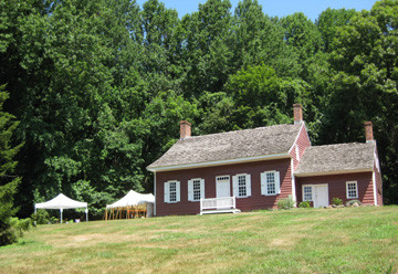 This is not the original location for this structure. Originally, it was built on land that became part of the huge AT&T complex that was nearby. The house was used as a storage shed for many years. In the late 1950s, it was scheduled to be torn down but someone recognized its value and campaigned for it to be saved. The Monmouth County Historical Association stepped forward as willing to become caretakers of the house; the Monmouth County Parks System donated the plot of land which is adjacent to Holmdel Park and the Longstreet Farms historical site. The house was moved to the new site and has been on display ever since. It is a tiny thing and easily overlooked, but is worth a visit as it has a fantastic collection of Colonial furnishings.