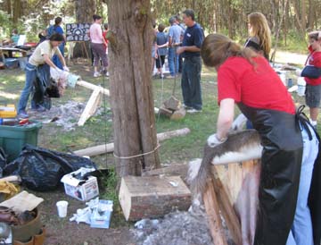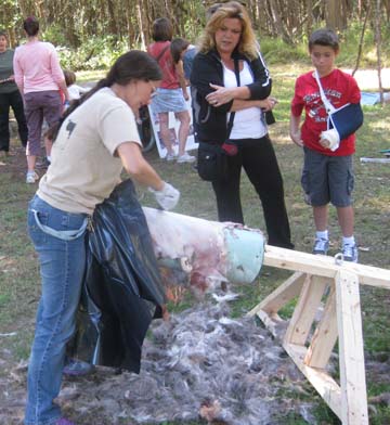 The ladies worked equally hard as the guys, defleshing their own deer hides: