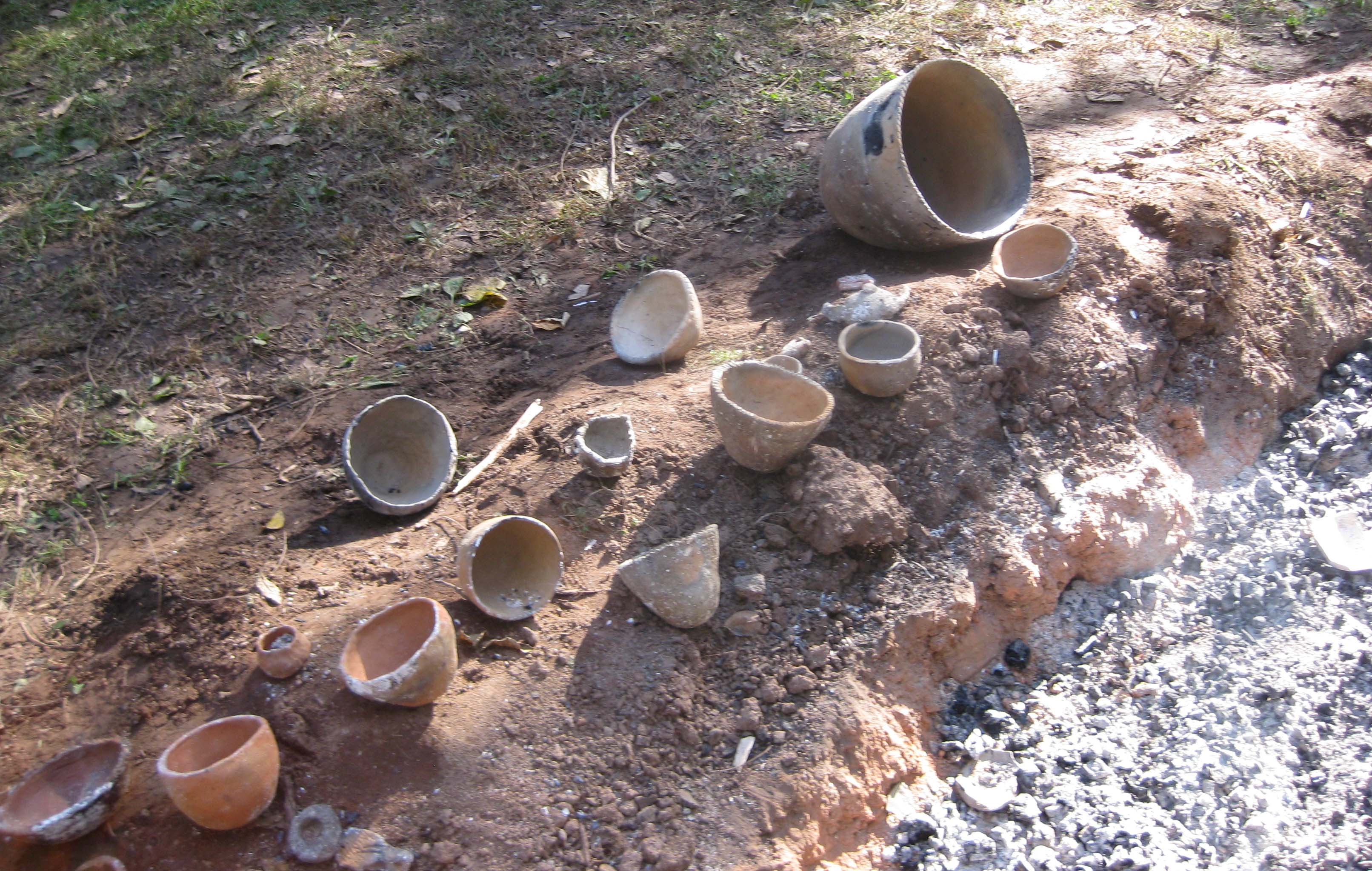 Eventually, the pottery fired was allowed to burn down and the pots fished up from the ashes to be allowed to cool slowly: