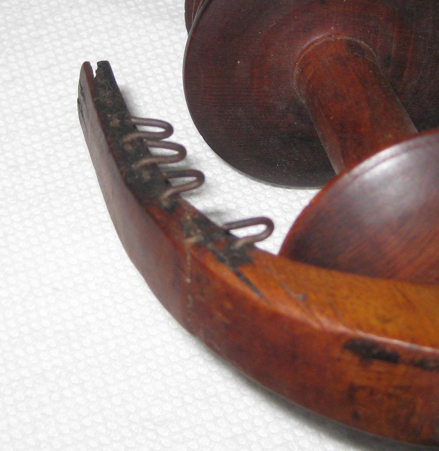 If I were going to spin for extended periods of time on this flyer, I would have it replaced. The shaft is in excellent condition, so a new flyer could be built using the old shaft. This repair costs around $70 to $100. A new whorl is approximately $30 to $50. Many spinners like additional bobbins, and these typically cost around $30-35. To replace this flyer, a spinner looking at an additional $125 to $150, plus the cost of any new bobbins, over the initial price of the wheel.