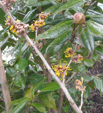 On this day of snow and sleet, the witch hazels are blooming: