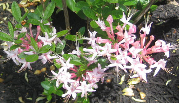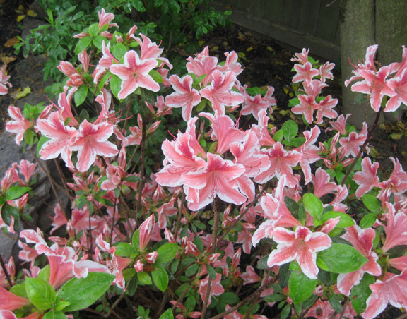 We plugged in some azaleas, too, both evergreen and deciduous. Not sure of the variety on this evergreen one: