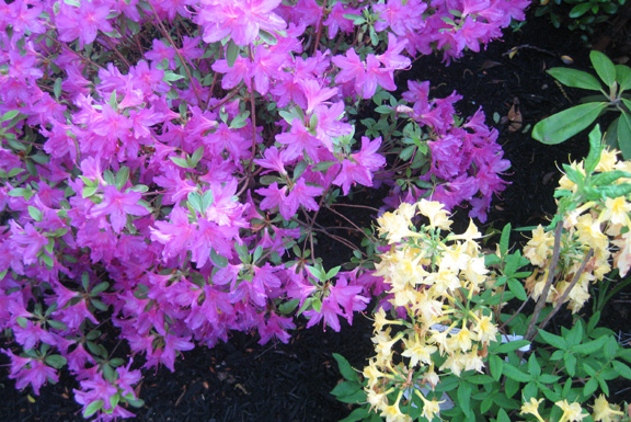 An evergreen and a deciduous azalea and again, the deciduous one is scented: