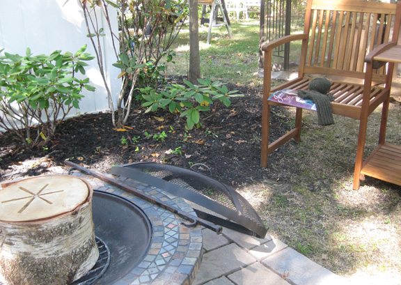 It is not quite mitten weather yet, but the firepit area makes a lovely knitting spot: