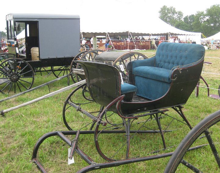 My regular readers know I tend to haunt auctions for spinning wheels. Many a good wheel turns up this way, if you know what to look for. At the end of June, though, I attended an auction full of wheels of a different sort. A carriage auction.