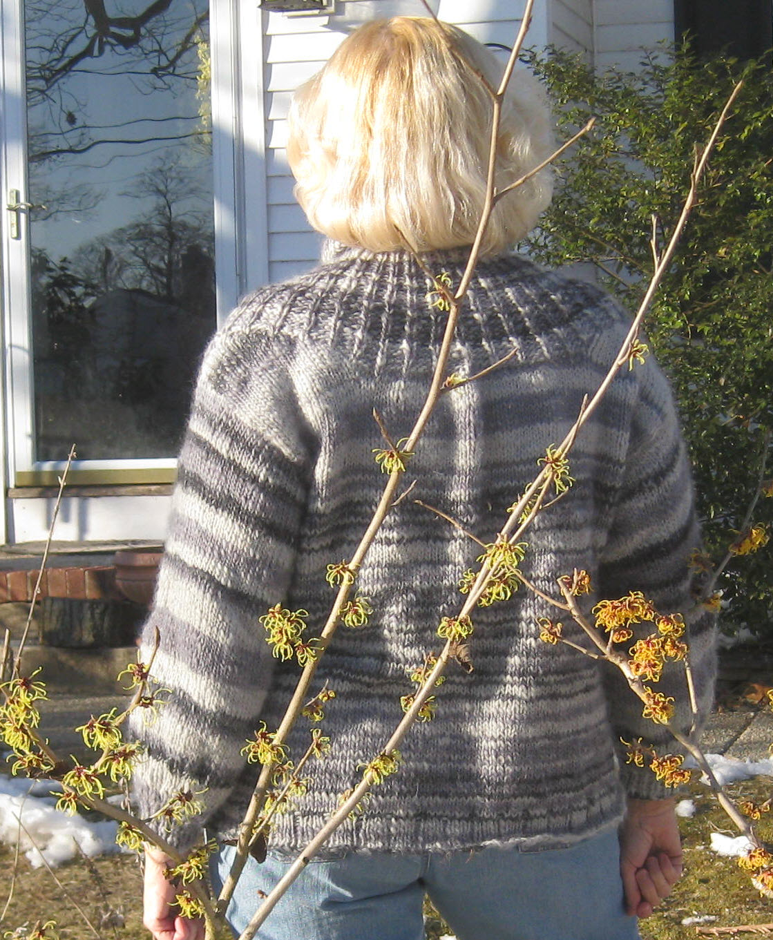 I pushed to finish the February sweater so I could wear it in February. The witch hazels are in bloom. The days are getting longer. February is fading away, but I have a nice new sweater to get me through the chilly days of spring.