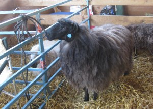 8.) If you plan to buy a raw fleece, visit the sale early before it is crowded with people. Tip: the area will be crowded with about, oh, 5 people in it. The fleece show and sale is allotted a tiny corner of space and was absolutely jammed with bags. Bags with blue tags are show fleeces; bags with yellow tags are for sale only. Trouble is, there are yellow-tagged bags piled high on tables, and shoved in heaps under the tables. There is no leisurely poking through bags here. I was fortunate enough to find a very nice black Finn fleece and a lovely Lincoln/Merino cross that happened to be right out on top, calling to me. Getting them to the register was an adventure; John swears several fleeces reached out from under the table and tried to pull him down. The volunteers at the fleece sale are absolutely the best, the nicest, the calmest people who kept smiling throughout. They are extremely organized and really have their act together. The show organizers really need to give them more space.