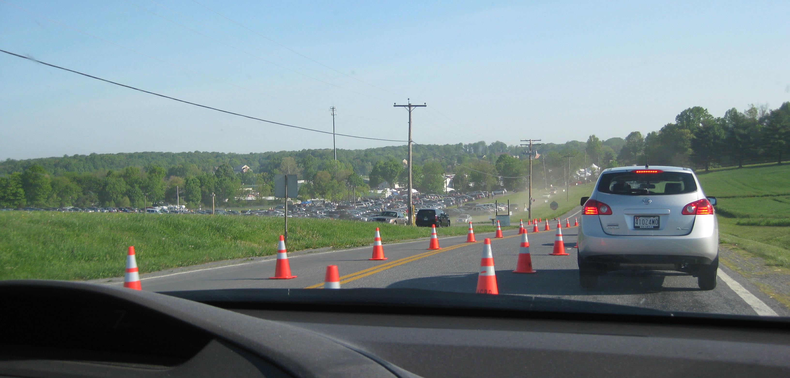 It took about 15 minutes to go the last half-mile to the parking lot, but at least the car was within walking distance of the gate. This is a good thing if you plan to make multiple purchases that need to be walked back to the car. If you arrive later than 9:15, you will park “up the hill.”